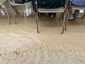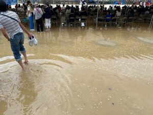 応援合戦の声もかき消され・・・気づいたら足元は深さ15センチくらいの水。