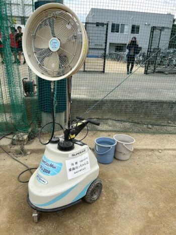 「愛歯坊ちゃん会」は母校に物品を寄贈しているのですが、先日運動会に行った際に、寄贈したミスト送風機を見つけました。